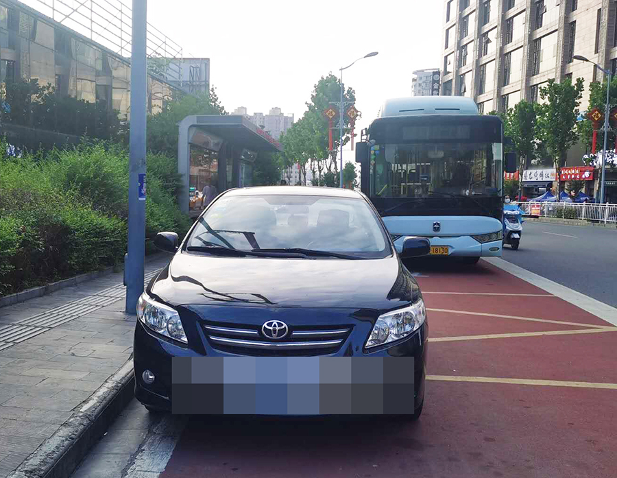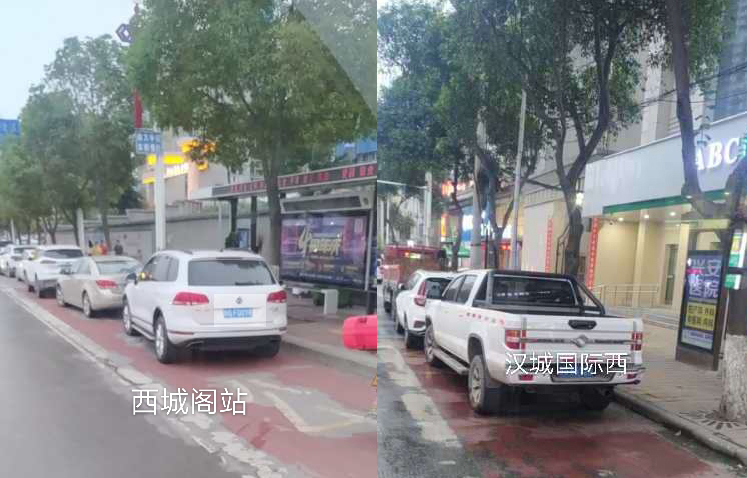 在金州廣場南站,十幾輛私家車“整齊劃一”的停在公交車站位置,地面紅色區(qū)域上的公交兩字也被完全覆蓋,從遠處望去,站牌旁坐著幾個人正等待公交車的到來。在興華名城站,一輛私家車停靠在公交車站前,駛來的公交車無法按其規(guī)定進站停車。在西城閣站和漢城國際西站,幾輛私家車甚是“任性”,儼然將公交車站當(dāng)成了“停車場”,筆者在此駐足十幾分鐘,它們依然“紋絲不動”,有的車上甚至沒有車主。