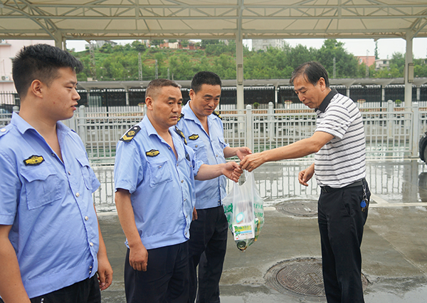 7月17日,市公交公司黨委書(shū)記、董事長(zhǎng)張曉強(qiáng)、總經(jīng)理熊衛(wèi)軍、黨委副書(shū)記錢(qián)萬(wàn)輝一行為一線職工送去“夏日清涼”和關(guān)懷,讓他們?cè)诰€路上感受“涼爽”,不斷提升公交運(yùn)營(yíng)服務(wù)質(zhì)量。